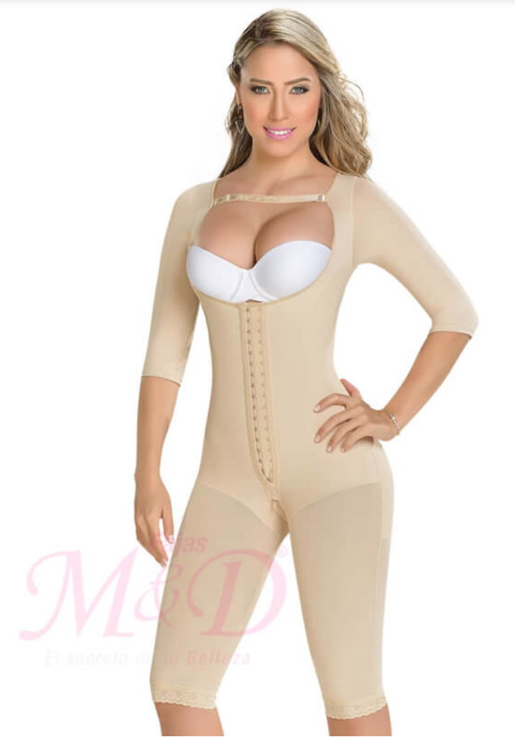 Faja larga con espalda cubierta de uso diario y posquirúrgico, incluye mangas que brindan control en los brazos.