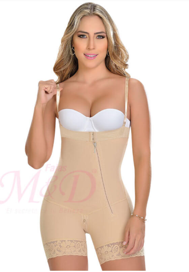 Faja corta con strapless siliconado de uso diario, su diseño es totalmente discreto, brinda seguridad y comodidad, cuenta con refuerzo abdominal y cierre diagonal que ofrece control y discreción bajo cualquier look. De compresión alta.